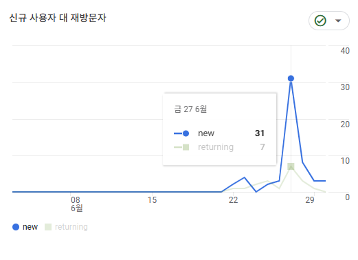 첫 사용자 수치와 실제 수치가 차이가 나는 이유는 에브리타임이나 네이버 카페 앱에서 사이트를 접속할 경우 브라우저가 아닌 웹뷰 형식으로 연결되어 (direct) / (none) 으로 수집되기 때문에 수작업으로 유입 사용자를 집계 해주었습니다.