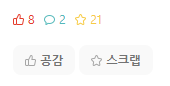 에브리타임에는 스크랩이라는 "글 저장" 기능이 존재하는데, 위 사진을 확인해보면 21명이 제 글을 저장한 것을 알 수 있습니다.
