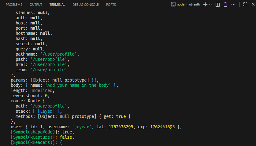 getProfile(@UserDecorator() request: { id: number; username: string }) {