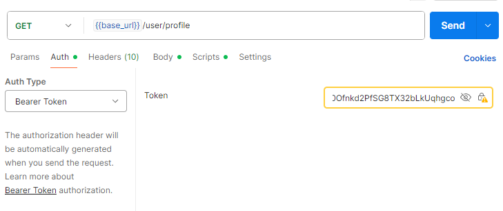 그 후 Guard를 적용시켰던 profile API에 Token을 넣고 요청을 진행합니다.