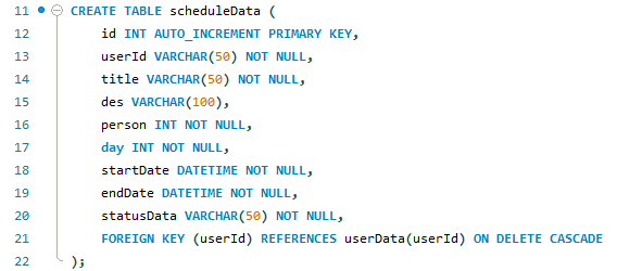"INSERT INTO scheduledata (userId, title, des, person, day, startDate, endDate, statusData) VALUES (?,?,?,?,?,?,?,?)";