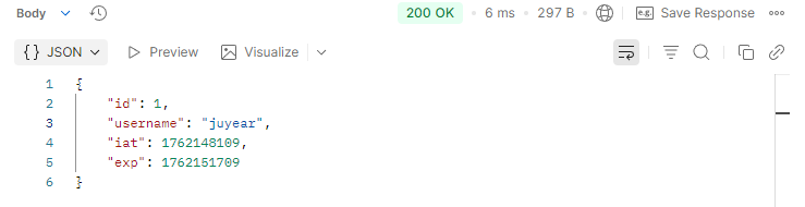 요청이 완료되면 정상적으로 JWT가 발급되어 반환된 것을 확인할 수 있습니다.