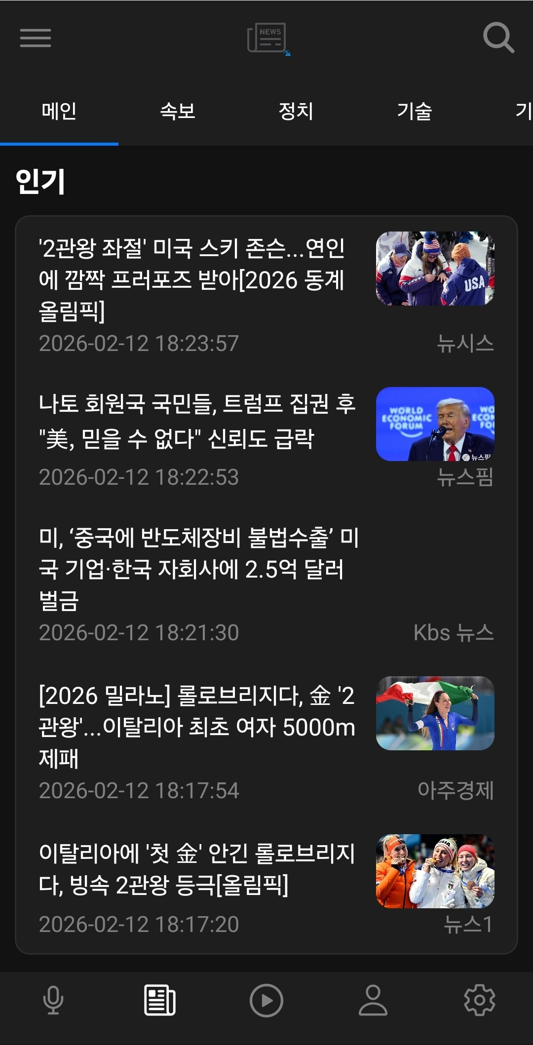 인기 뉴스, 추천 뉴스, 모든 뉴스가 순차적으로 나오도록 설계하였습니다.
