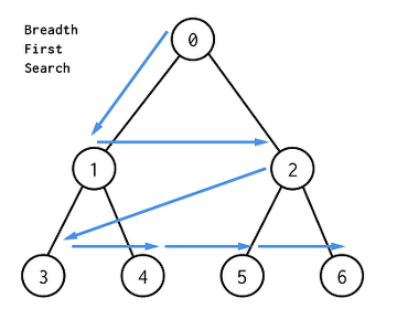 위에 사진을 보면 이해하기 쉽다. 0을 시작 노드라고 가정했을 때, 인접한 노드인 1과 2를 먼저 탐색하는 것을 알 수 있다.(레벨별로 탐색하는 것도 알 수 있다.)